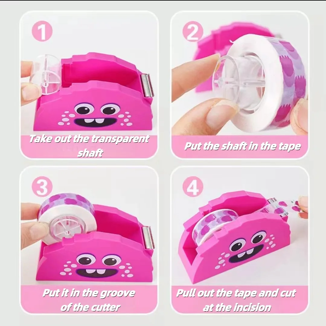 Custom Cartoon Monster Tape Dispenser Convenient School Supply Stationery Set for Students